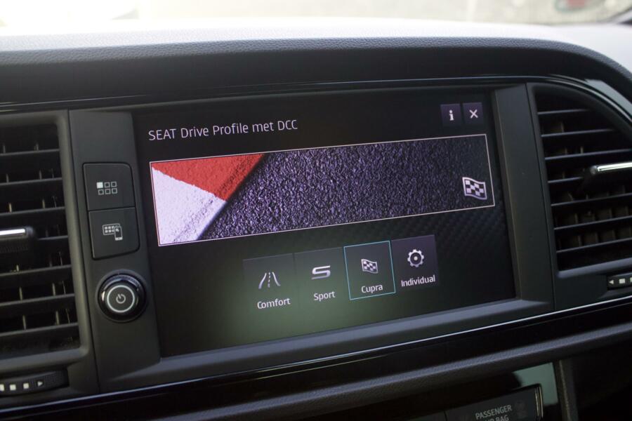 Onderscheidende Opties: Adaptief Onderstel (DCC) Cupra R Velgen Virtual Cockpit Camera Beats by Dre geluidsinstallatie Keyless Entry & Go Front Assist Lane Assist Rijstrookassistent Verkeersbordherkenning File-assistent Elektrisch inklapbare spiegels Leder Alcantara interieur Rijmodusselectie (SEAT Drive Profile) LED achterlichten LED-sfeerverlichting